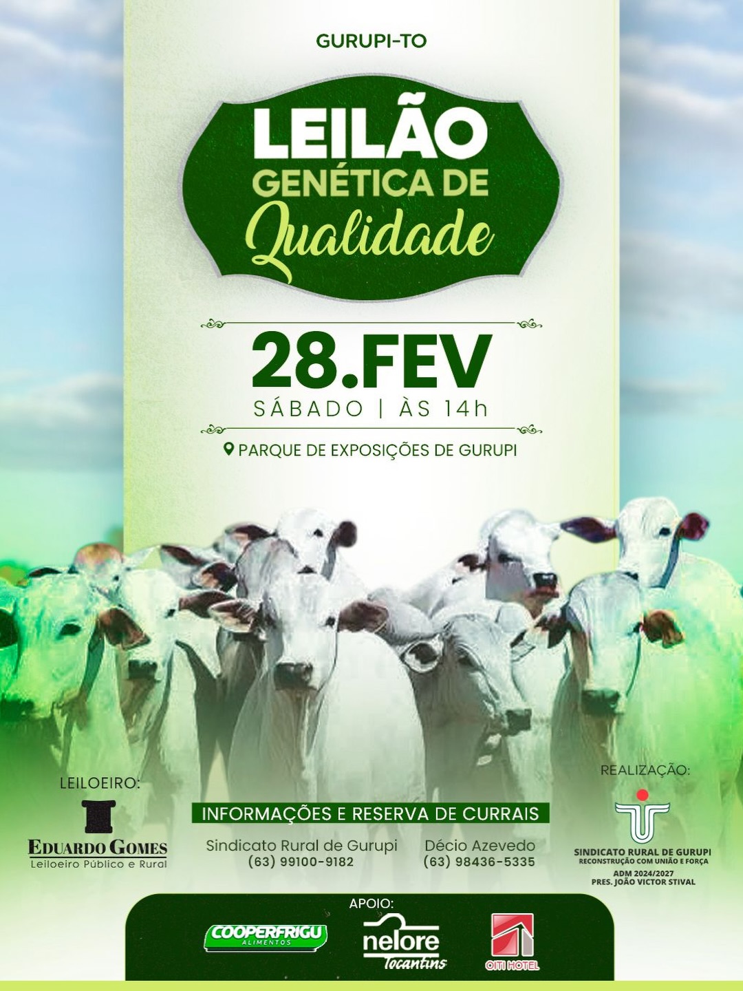 Leilão Genética de Qualidade será realizado em Gurupi no dia 28 de fevereiro